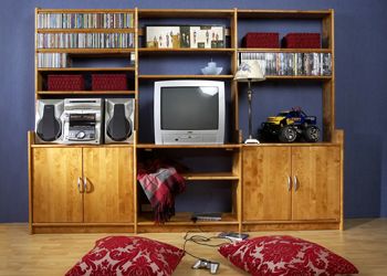 Bild 2 - "Kirsche" gebeizt, hier mit glatten Türen und unter anderem mit 3 CD-Borden, sowie weiteren "nur" 20 cm tiefen auf 36 cm tiefen Systemen.